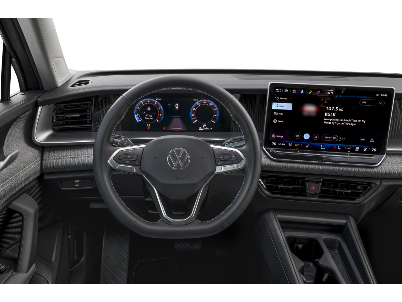 - MIB4 Composition Media Touchscreen w/AM/FM Radio -inc: WMA/MP3/FLAC player w/USB, 12.9" touchscreen multi-function center display w/backlit sliders, voice control, 6 speakers + center speaker (7 speakers total) sound system, capability for in-vehicle 4G LTE enabled Wi-Fi (cellular data plan required; includes limited trial), capability for connected vehicle services (capabilities for services vary; requires enrollment or subscription), Bluetooth® connectivity (for compatible devices), SiriusXM w/360L (w/3-month free trial subscription; 360L services require acceptance of Car-Net terms), App-Connect smartphone integration (w/Apple CarPlay, Android Auto and MirrorLink) via USB, wireless App-Connect smartphone integration (for compatible devices) w/multi-phone pairing capability, 45W fast charging (for compatible mobile phones and accessories) via USB in both rows and Qi wireless inductive charger, cooled, up to 15W (for compatible mobile phones and accessories) All connected vehicle services are subject to terms and limitations. Some services require a paid subscription. See dealer or vw.com/connected for important details.