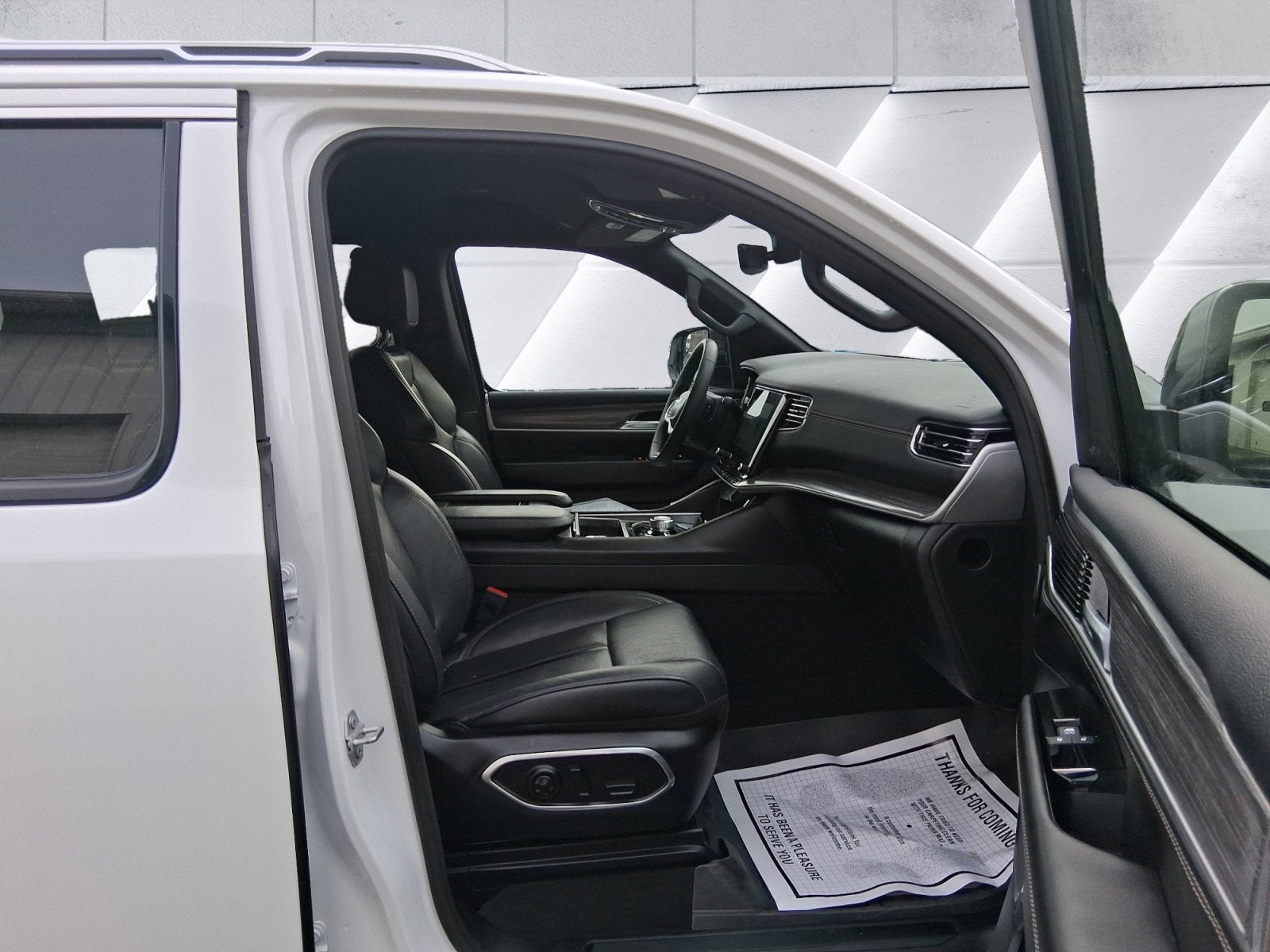 Featured Equipment: Wagoneer Series III, 4D Sport Utility, 3.0L I6, 8-Speed Automatic, 4WD, Bright White Clearcoat, Global Black w/Leather Trimmed Bucket Seats, Adjustable pedals, Alloy wheels, AM/FM radio: SiriusXM with 360L, Apple CarPlay/Android Auto, Auto High-beam Headlights, Auto-dimming Rear-View mirror, Auto-leveling suspension, Automatic temperature control, Electronic Stability Control, Emergency communication system: Wagoneer Connect, Exterior Parking Camera Rear, Front dual zone A/C, Front fog lights, Fully automatic headlights, Heated front seats, Heated rear seats, Heated steering wheel, Leather Trimmed Bucket Seats, Navigation System, Power driver seat, Power Liftgate, Power passenger seat, Quick Order Package 25N, Radio: Uconnect 5 Nav w/10.1 Display, Rain sensing wipers, Rear dual zone A/C, Reclining 3rd row seat, Speed-sensing steering, Speed-Sensitive Wipers, Steering wheel mounted audio controls, Variably intermittent wipers, Ventilated front seats, Wheels: 20 x 9.0 Aluminum (DISC).